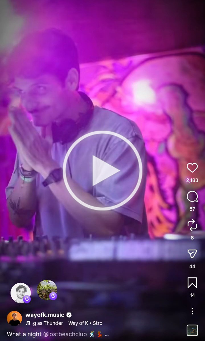 Way of K brings immersive, driving energy to a lineup, especially around peak hours or late night.Expect deep bass lines, warm melodic overtones, energetic house percussion, and tasteful minimalist vocals generally in the range of 120 - 128 bpm.In terms of style, he sits somewhere between Deep, Melodic, and Organic House.